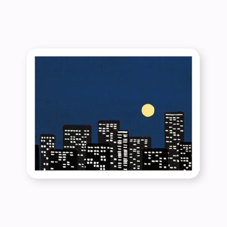 都会の夜を想像してアクリル絵の具で描いたものをステッカーにしました。